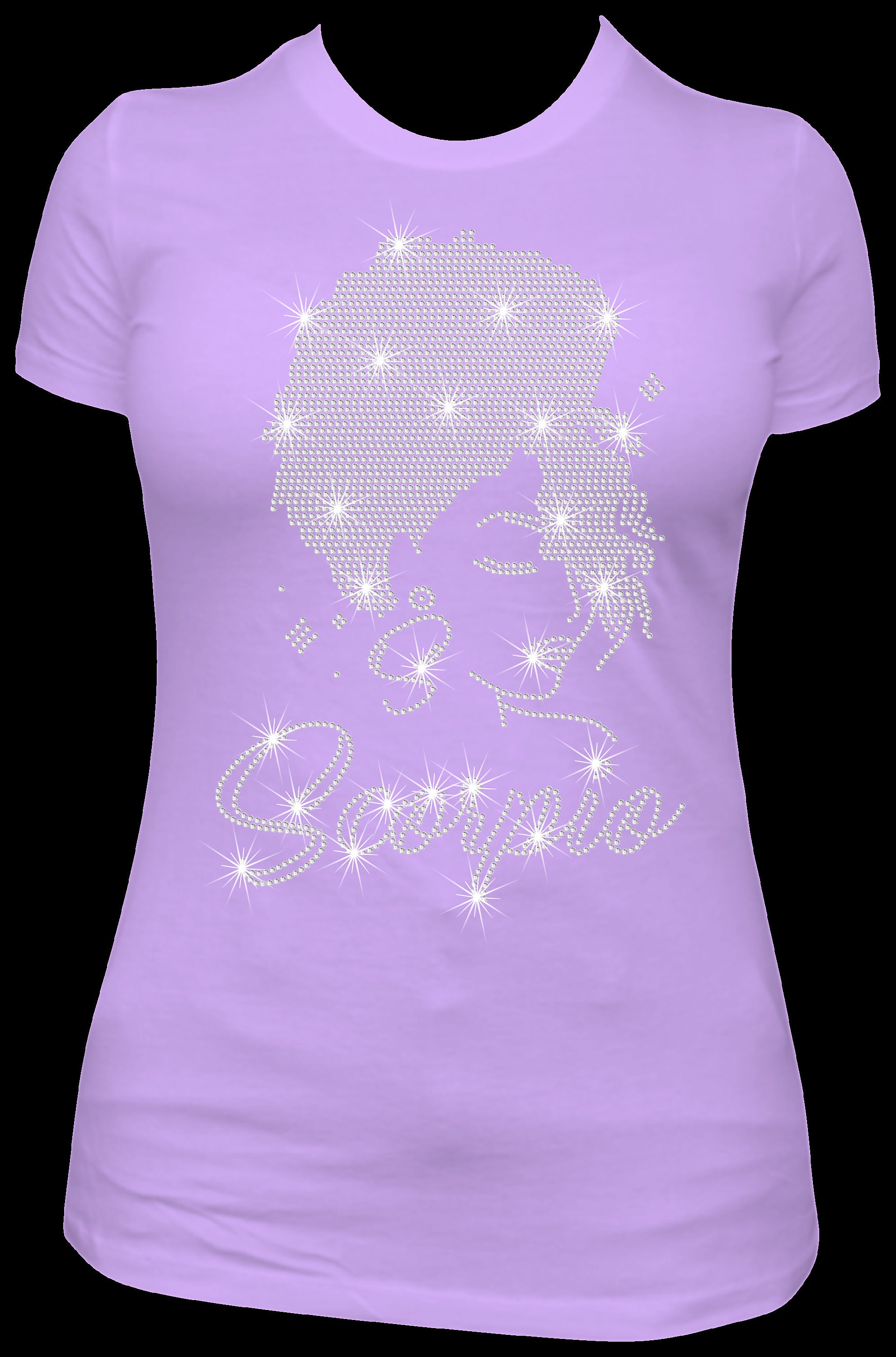 The design can be applied using Vinyl or sublimation with rhinestones on finished products.
